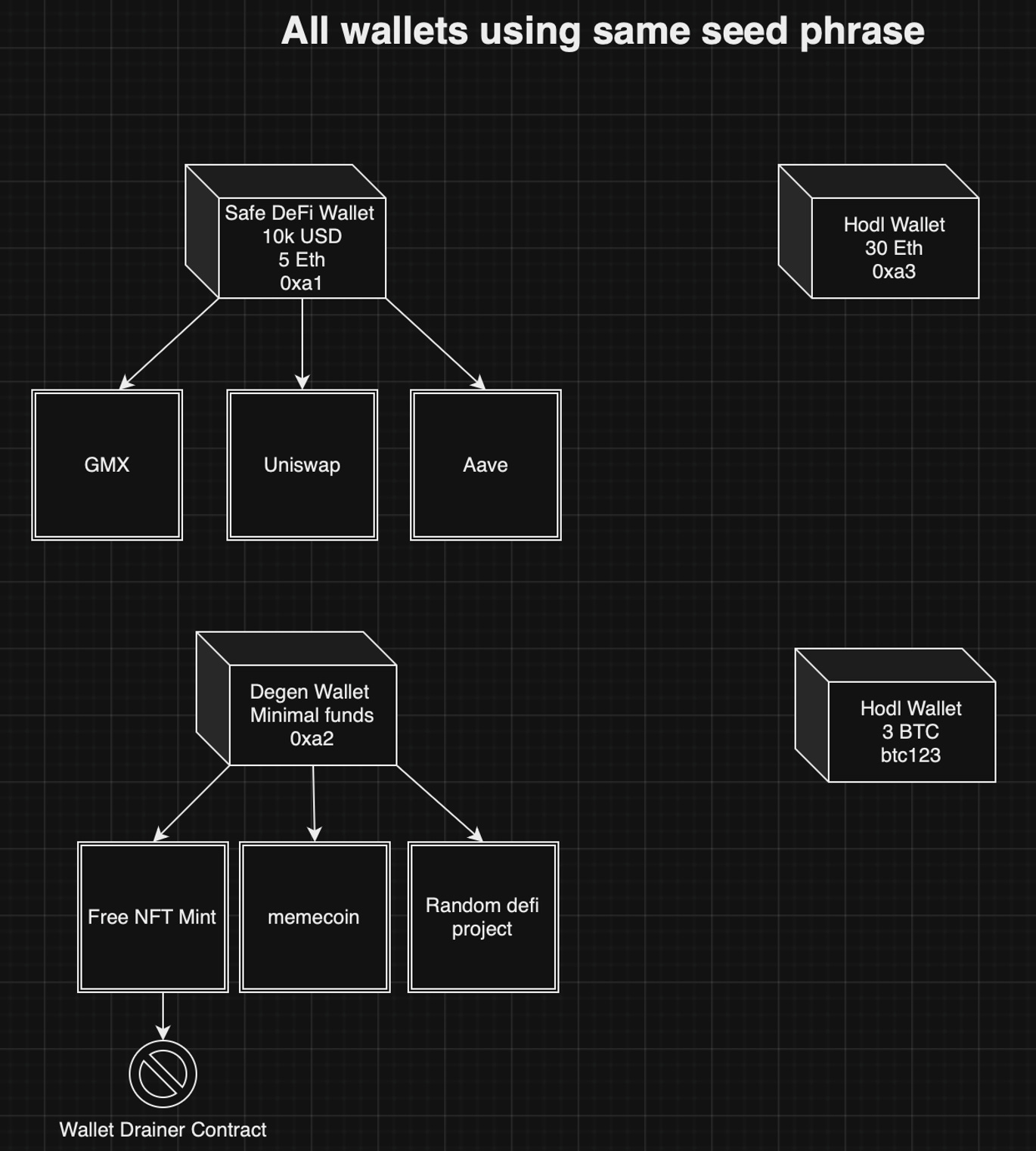 Some of the most common exploits are due to compromised seed phrases.
